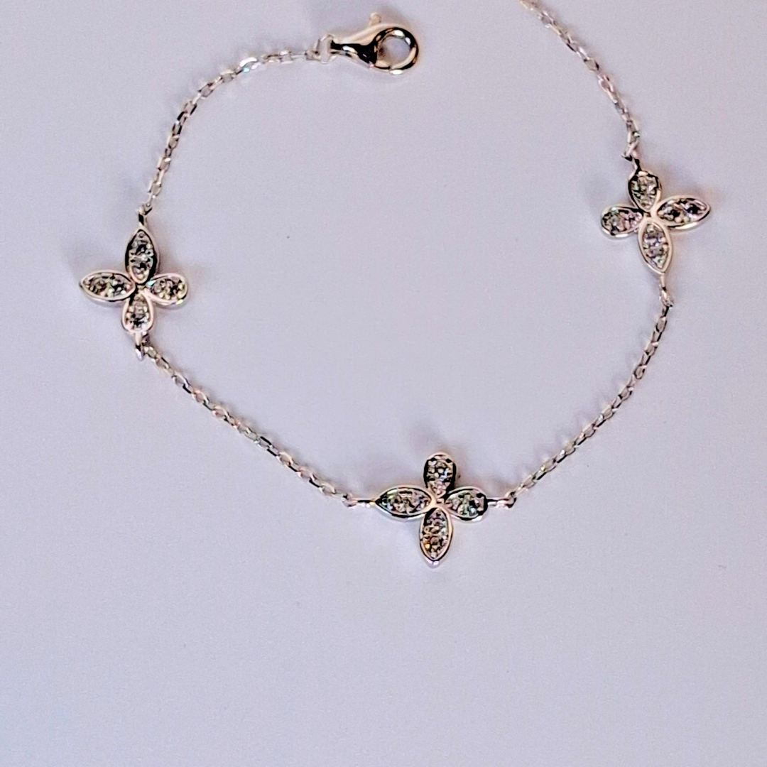 צמיד כסף עדין, מעוטר בשלושה תלתנים משובצים זירקונים נוצצים לאורכו