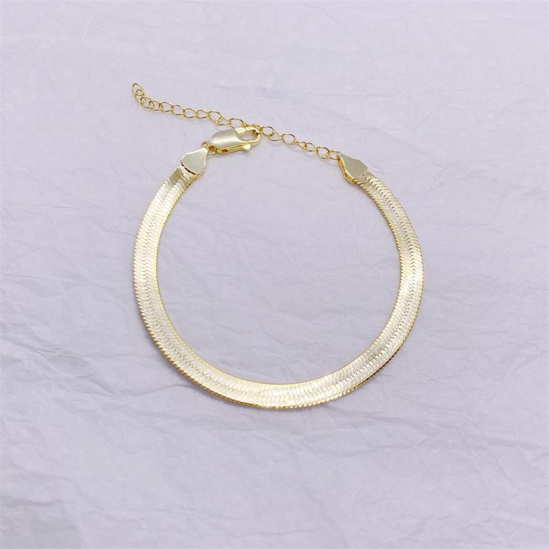 צמיד שטוח ורחב בעובי 4.5 מ"מ, עשוי כסף סטרלינג 925 בציפוי זהב 18 קראטעיצובו הנקי...