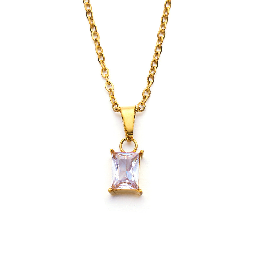 שרשרת סטיינלס סטיל איכותית בציפוי זהב 18 קראטבמרכזה תליון מלבני בעיצוב קלאסי, המשובץ באבן נוצצת...