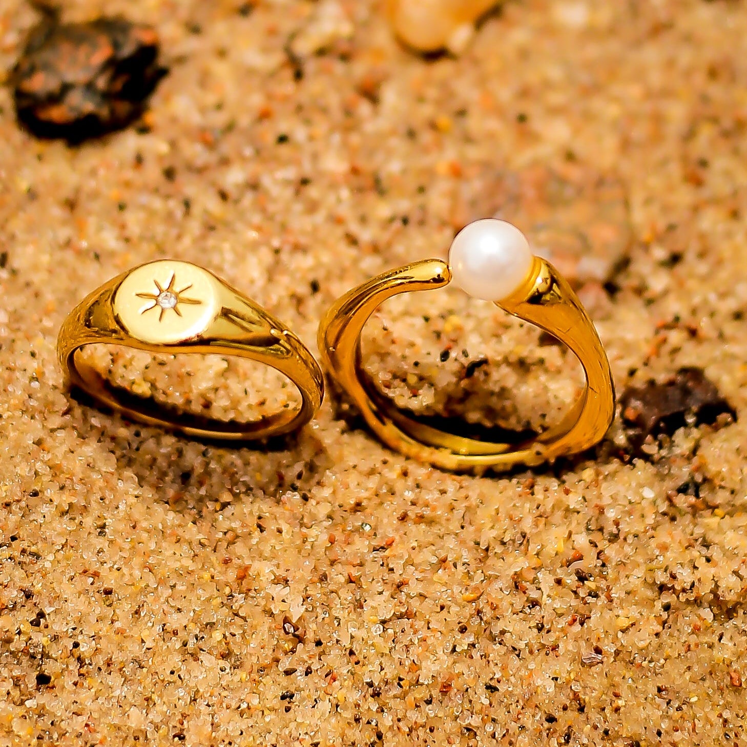 הטבעת עשויה סטיינלס סטיל איכותי בציפוי זהב 18 קראט, מה שהופך אותה לעמידה ונוחה לשימוש יומיומי – גם במים