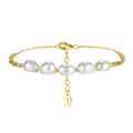 צמיד כסף עדין בציפוי זהב, מעוטר פנינים בעלות צורה אורגנית ייחודית. חרוזים קטנים מכסף בציפוי זהב משני צידי הפנינים מוסיפים נגיעה עדינה של ברק