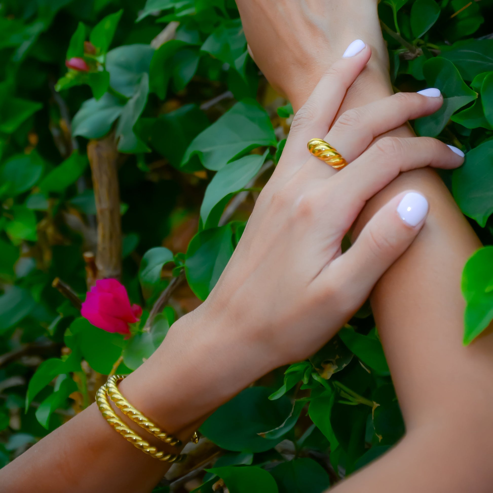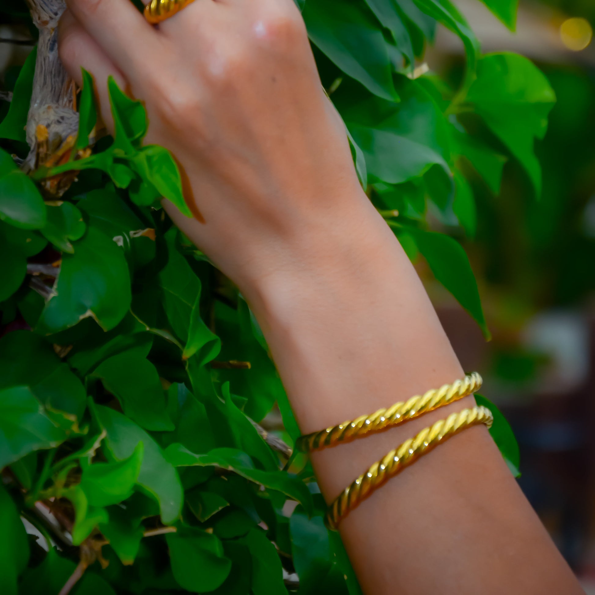 צמיד פתוח בגימור טוויסט יוקרתי בציפוי זהב 18 קראט