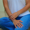 במרכזה משובצת אבן שחורה קטנה שמוסיפה עומק ואופי ייחודי – שילוב מדויק של נשיות, עוצמה וסטייל