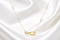 השרשרת משלבת תליון אינסוף זהוב, עם פנינים קטנות שמפוזרות לאורך השרשרת ויוצרות מראה נשי, רך ויוקרתי