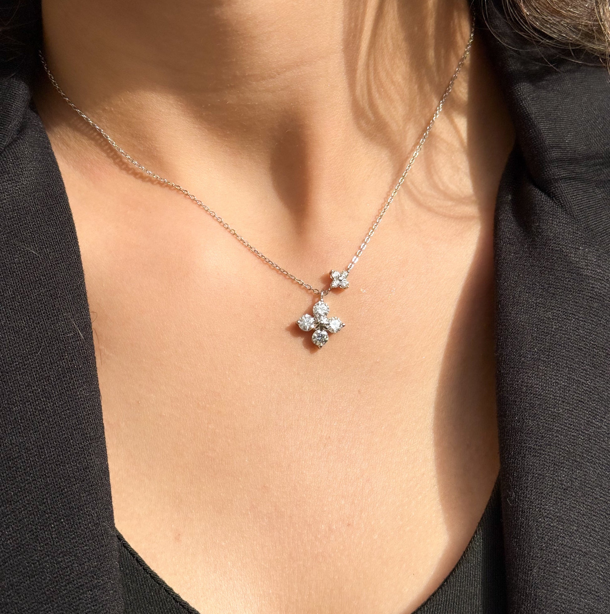 שרשרת Clover Moissanite משלבת עיצוב עדין עם ברק יוצא דופן.