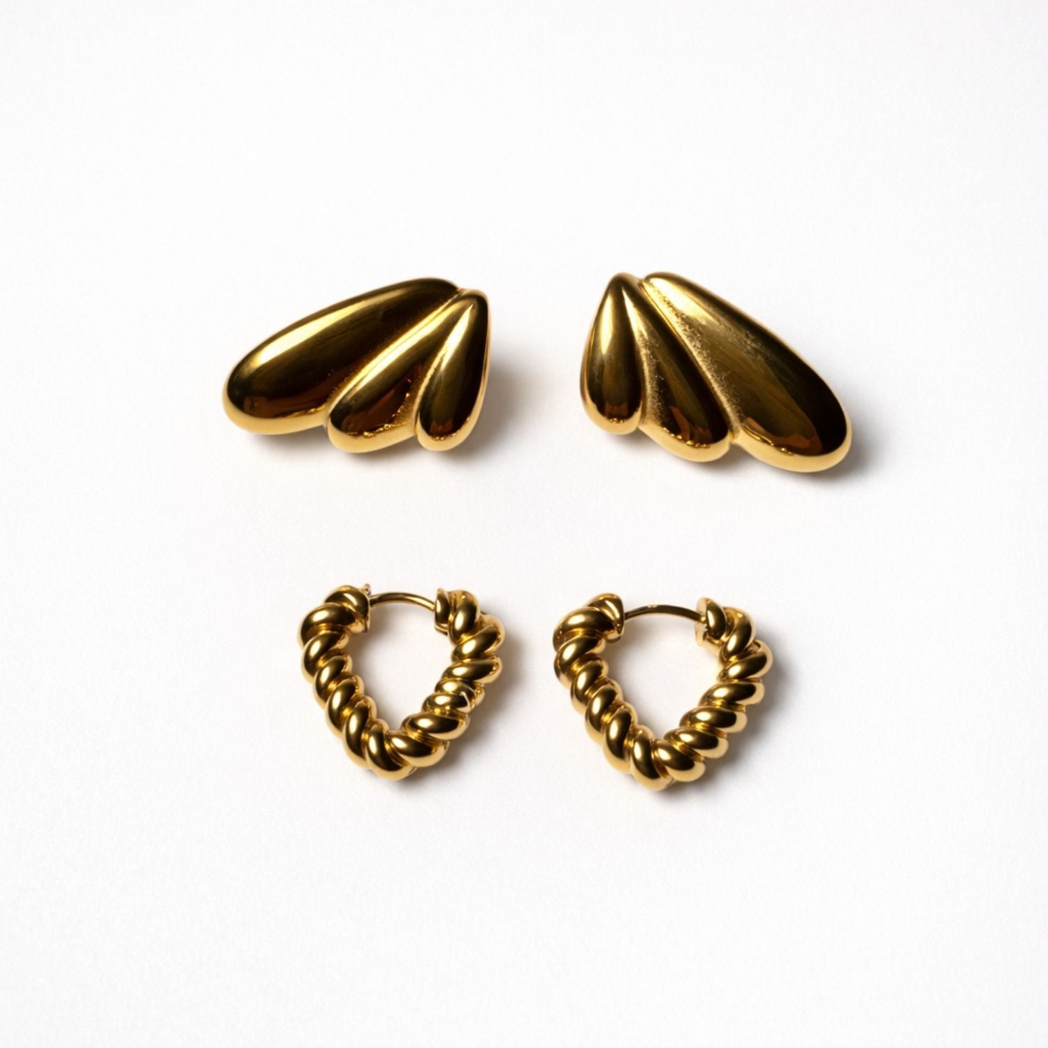 עגילי סטאד בצורת לב פיסולי למראה רך ורומנטי